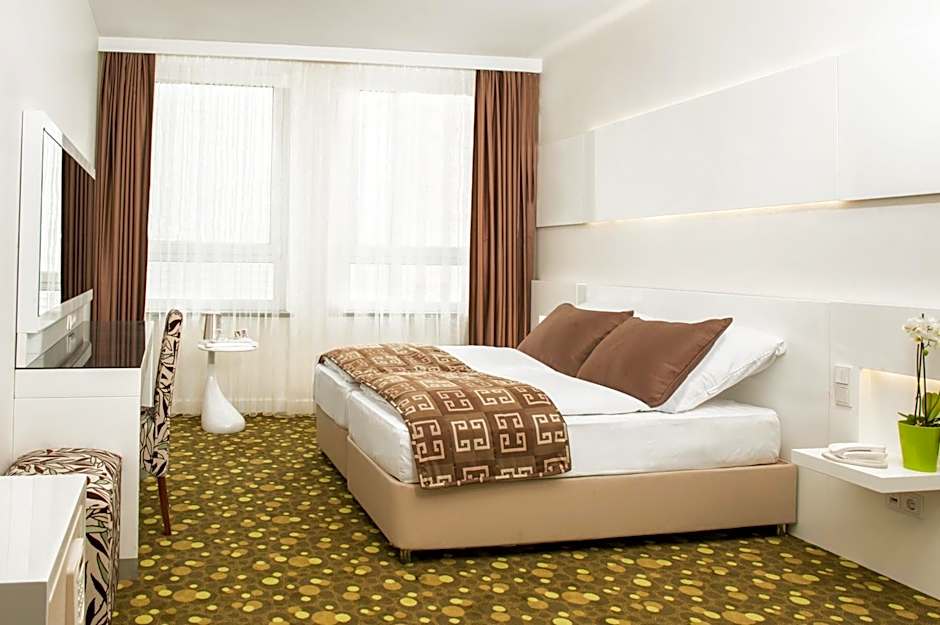 Bed configurations vary by room type: the Standard Room includes a Queen size bed; Comfort Double Room comes with a Sofa Bed and a Queen size bed; Comfort Twin Room features two Twin beds plus a Sofa Bed; Deluxe Double Room includes a Sofa Bed and a Queen size bed; the Family Suite offers a Queen bed with Sofa Beds.